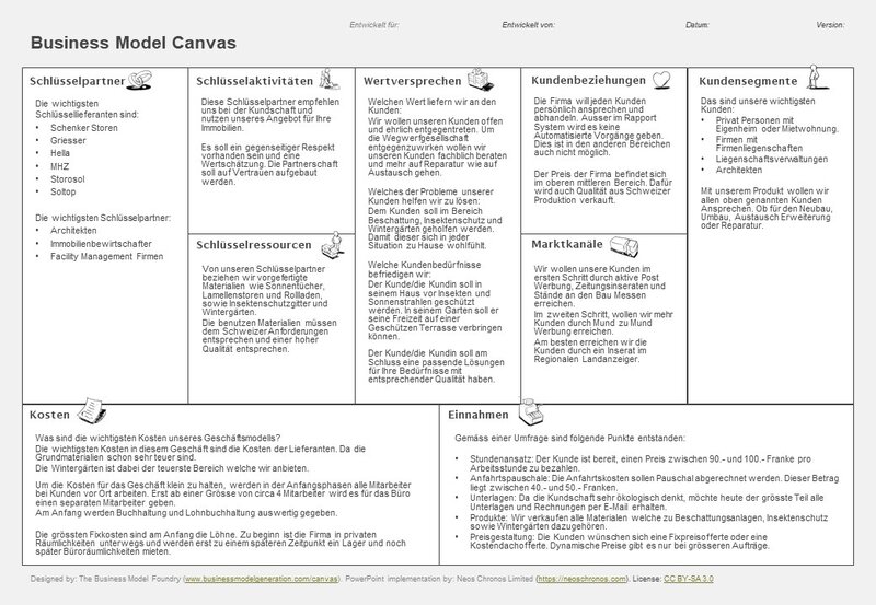 Beim Studienobjekt handelt es sich um eine Geschäftsgründung im Beschattungsbereich. Der Geschäftssitz der Firma soll in Full, Kanton Aargau realisiert werden. Das avisierte Einsatzgebiet der Firma erstreckt sich von Basel via Aargau über Zürich bis nach Schaffhausen.