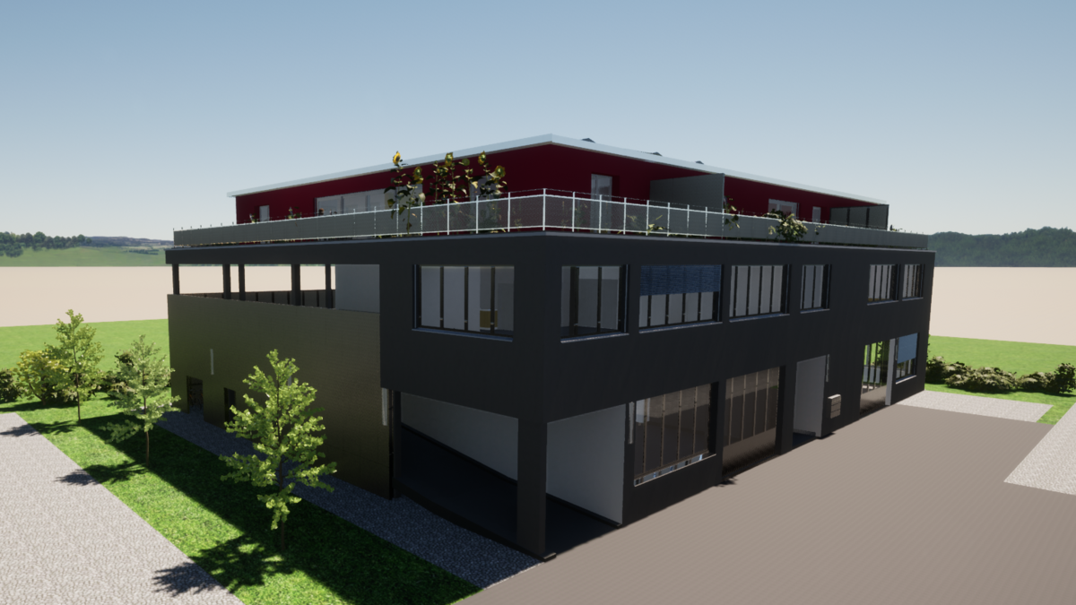 Neubau Gewerbehaus mit Dachparking