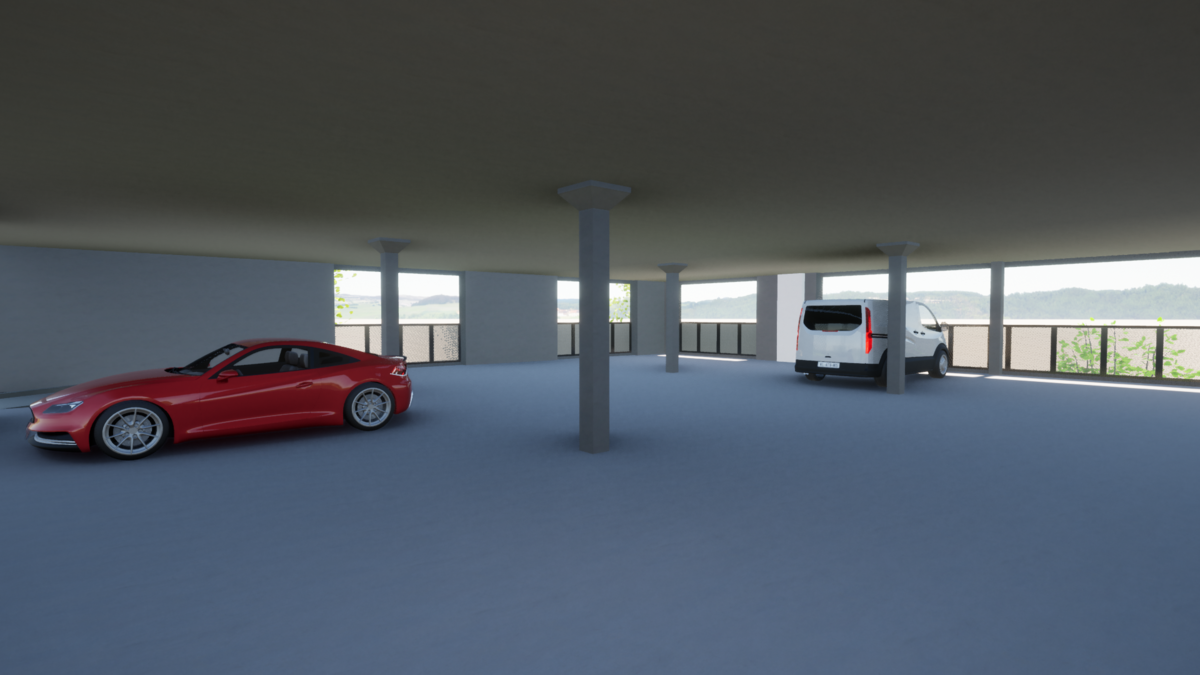 Das Parkgeschoss soll alle geforderten Parkplätze fassen sowie eine Befahrbarkeit für Kleinlastwagen ermöglichen.