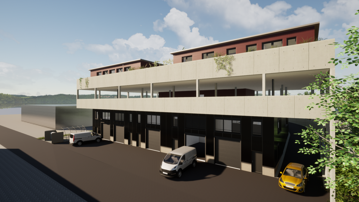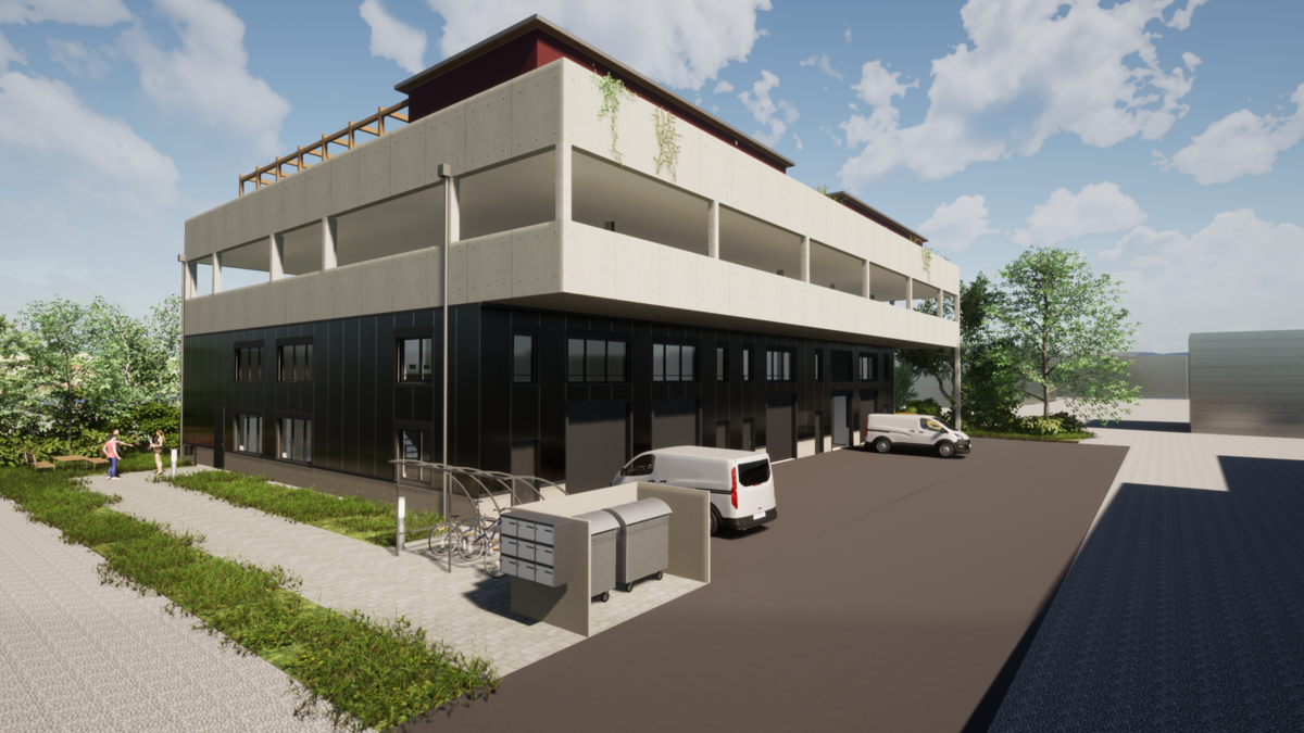 Neubau Gewerbehaus mit Dachparking