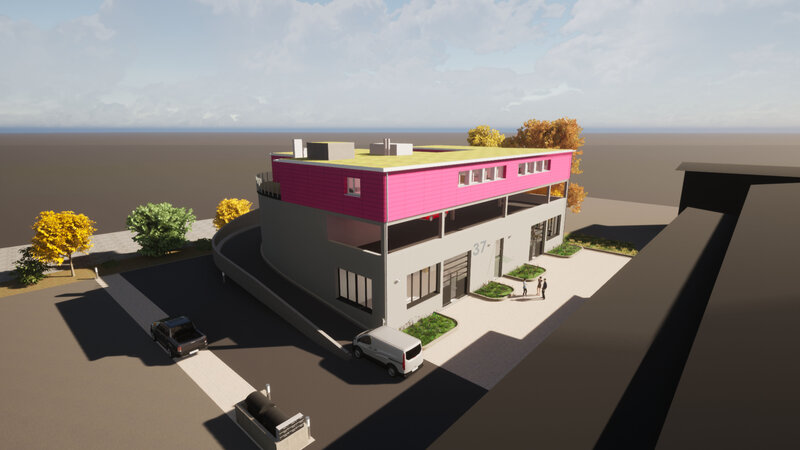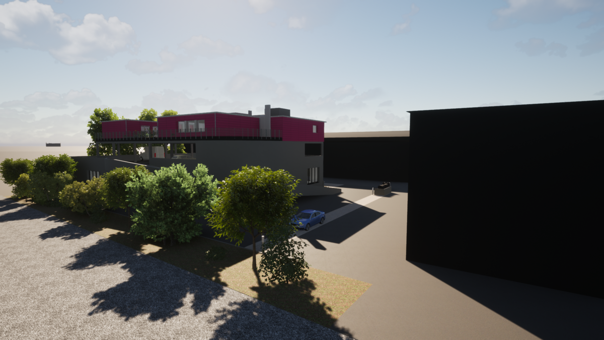 Um die Rampe architektonisch ins Projekt zu integrieren, wird diese direkt dem Gebäude entlang geführt.