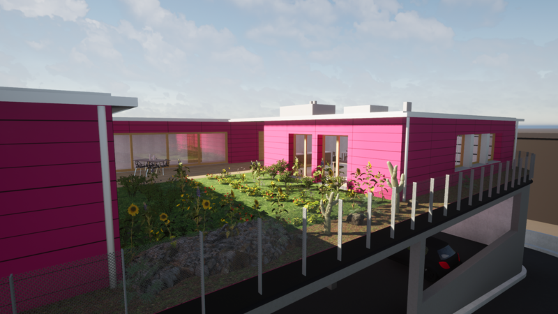 Das Ergebnis dieser Diplomarbeit ist ein Neubauprojekt mit vier Gewerberäumlichkeiten im Erdgeschoss, 14 Parkplätzen im Obergeschoss und nochmals vier Gewerberäumen im wiederaufgebauten Pavillon über dem Parkgeschoss. Der Neubau wird als Sichtbeton konzipiert und unterscheidet sich somit nicht nur in der Konstruktion vom Holzbau-Pavillon, sondern soll auch einen optischen Unterschied zeigen.