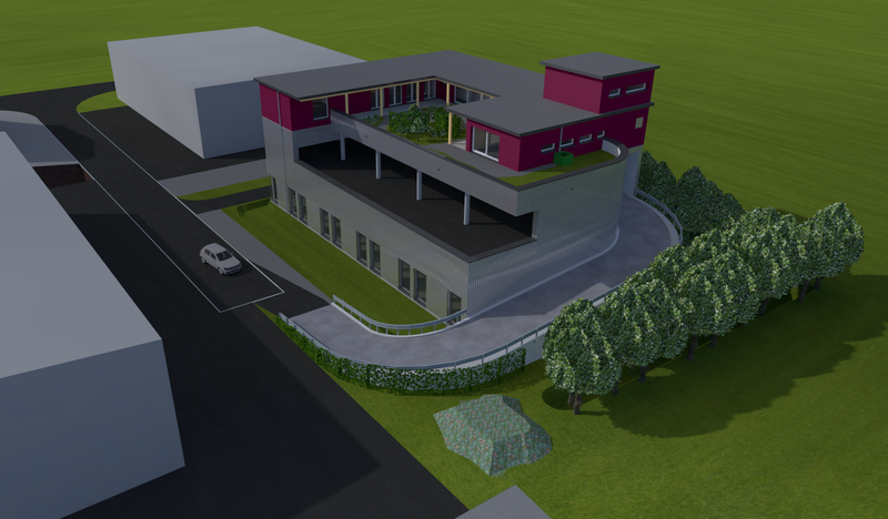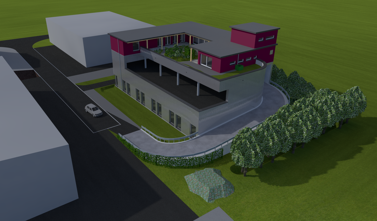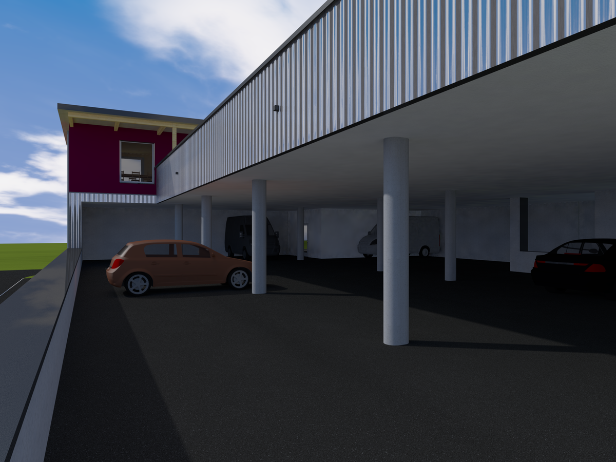 Neubau Gewerbehaus mit Dachparking