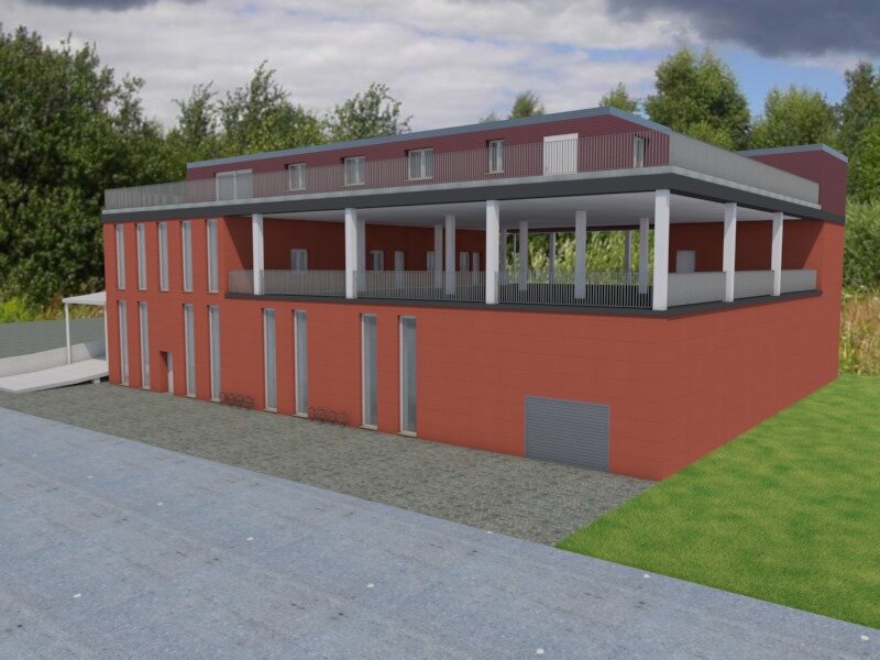 Für den Gewerbeneubau wird ein Betonskelettbau ausgeführt um bei Bedarf die Räume frei Aufzuteilen.