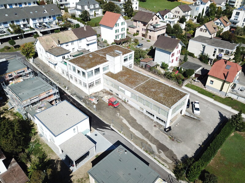 Die Liegenschaft befindet sich in einem Einfamilienhaus-Wohnquartier. Das Gebäude wurde ursprünglich als Quartiershaus erstellt und danach mehrfach erweitert bis es zum Schluss als Gewerbegebäude umgenutzt wurde.
