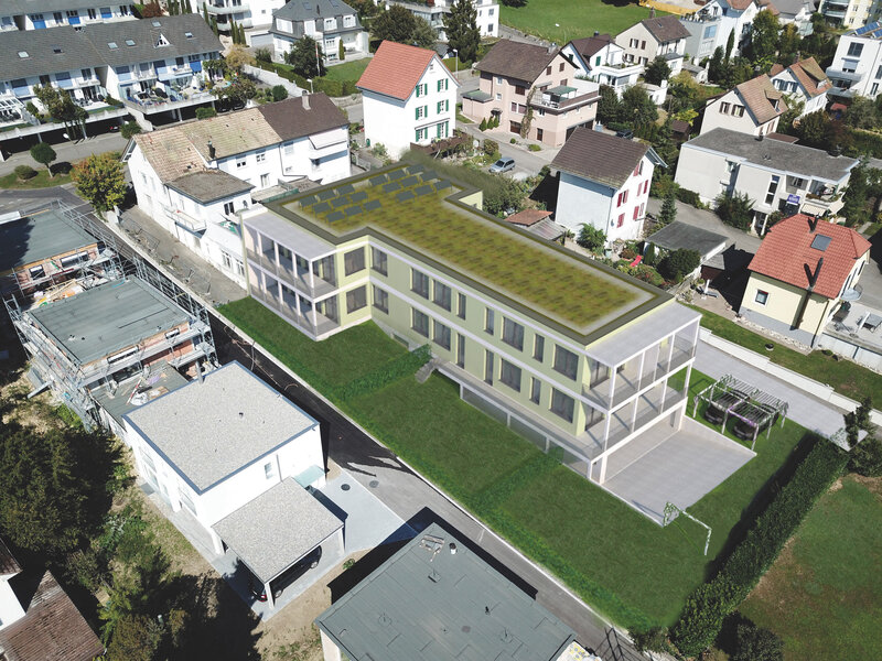 Die Grundrisskonzeption wurde auf Basis des bestehenden Skelettbaus erstellt, indem dieser modernisiert wurde und so Wohnungen für Familien, Paare oder Singles konzipiert wurden. Durch die behindertengerechte Bauweise entstand ein attraktives Wohnhaus, welches generationenübergreifend genutzt werden kann. Für jede der sieben entstandenen Wohnungen stehen grosszügige Terrassen zur Verfügung, welche überdeckt sind. Um die Gemeinschaft etwas zu fördern, gibt es im Südosten der Parzelle einen Gemeinschaftsgarten für gross und klein.
