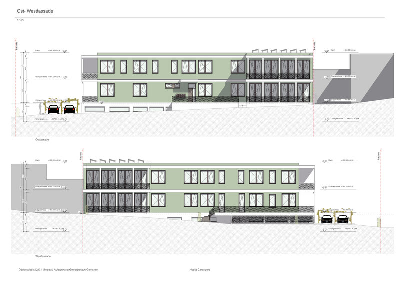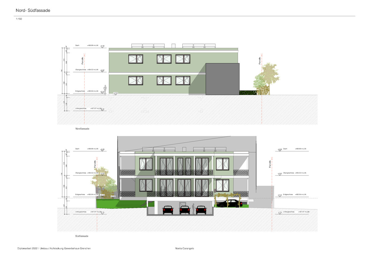 Nach der sechs-wöchigen Überarbeitung eines Gewerbegebäudes in Grenchen, ist ein Projekt entstanden, welches bewilligungsfähig und überzeugend ist. Das Gebäude widerspiegelt zum einen den Charakter des bestehenden Baus, wurde jedoch aufgefrischt, ergänzt, modernisiert und nun optimal ausgenützt. Es entstand ein Entwurf mit rotem Faden, welcher auf die Wünsche der Bauherrschaft eingegangen ist.