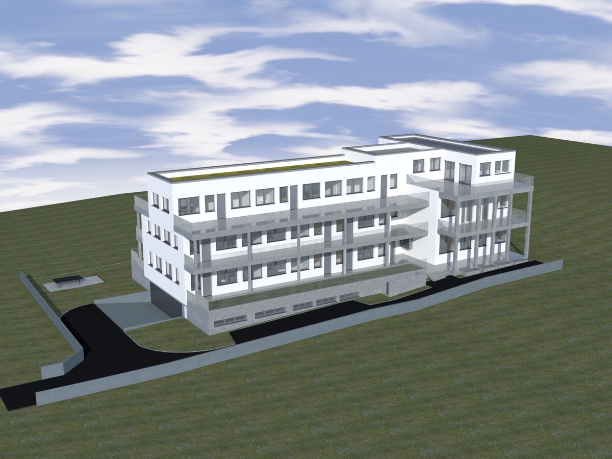 Das zweistöckige Gebäude mit Attikageschoss bietet Platz für 11 Wohnungen ein Parkhaus mit 10 Stellplätzen und 2 Aussenparkplätzen.