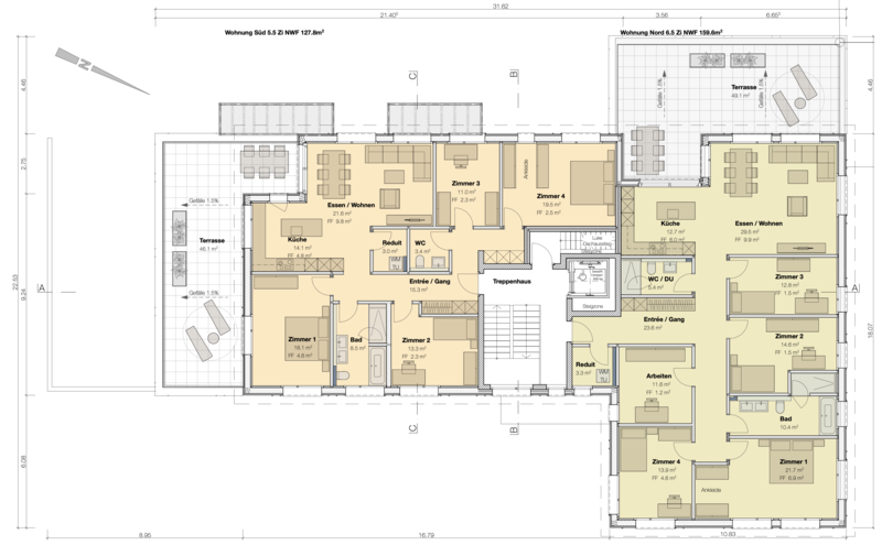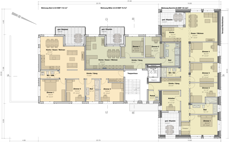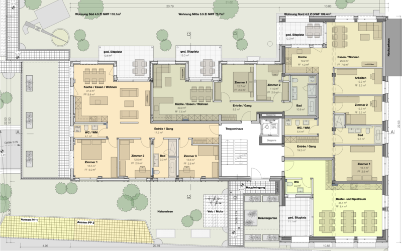 Es wurde auf einen mittleren Ausbaustandard der Wohnungen mit schönen Materialien und einem perfekt abgestimmten Gesamtkonzept gesetzt. Im speziellen sind zu erwähnen, die beiden grossen Attikawohnungen und der grosszügige Gemeinschaftsraum im Erdgeschoss.