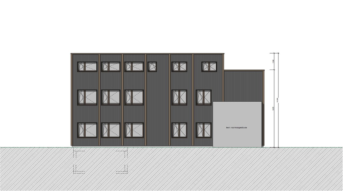 Es handelt sich beim Studienobjekt um ein leerstehendes Gewerbegebäude, eingebettet in einem Einfamilienhaus-Wohnquartier. Das Gebäude wurde ursprünglich als Quartierhaus erstellt. Die Liegenschaft wurde mehrfach erweitert und zu einem Gewerbegebäude umgenutzt. Zwei unterschiedlich hohe Gebäudekuben sind T-Förmig angeordnet und nördlich an die Nachbarliegenschaft angebaut. Das sich teilweise in desolatem Zustand befindende Gebäude steht schon seit Längerem leer. Die statische Grundstruktur in Skelettbauweise funktioniert jedoch noch und ist interessant. Die bestehende Bausubstanz soll erhalten bleiben und erweitert oder aufgebaut werden. Ziel ist es, aus der Liegenschaft wieder eine Wohnnutzung zu machen.
