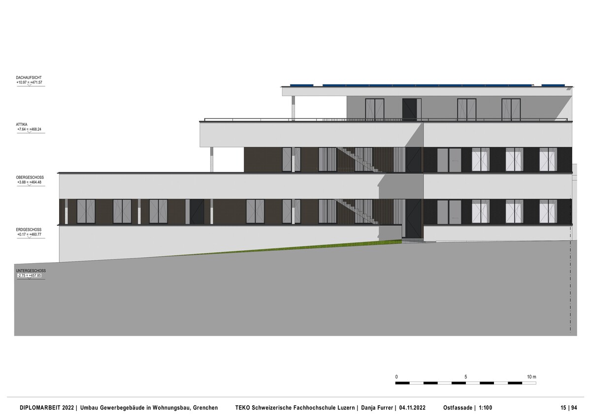 Während der sechswöchigen Diplomarbeit habe ich ein spannendes Konzept erarbeitet, welches sowohl ästhetisch als auch konstruktiv funktioniert. Wichtig bei der Erarbeitung meines Projektes war für mich, dass ich der Bauherrschaft eine gute Lösung präsentieren kann, welche ihren Wünschen und Vorstellungen von einer guten Rendite und nachhaltigen und langlebigen Baustoffen entspricht.