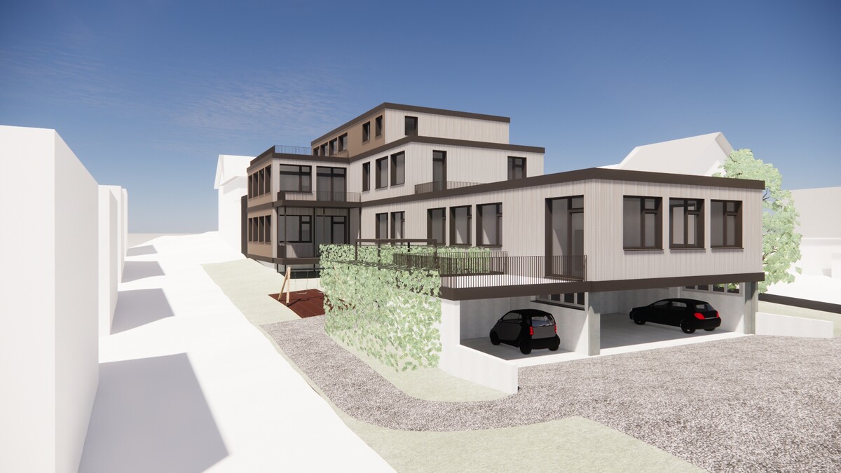 Das Obergeschoss wird teilerweitert und es wird ein neues Attikageschoss erstellt. Damit sich die Baukosten in Grenzen halten und so die Wohnungspreise für Familien tragbar bleiben, wird am bestehenden Gebäude nur das nötigste verändert.