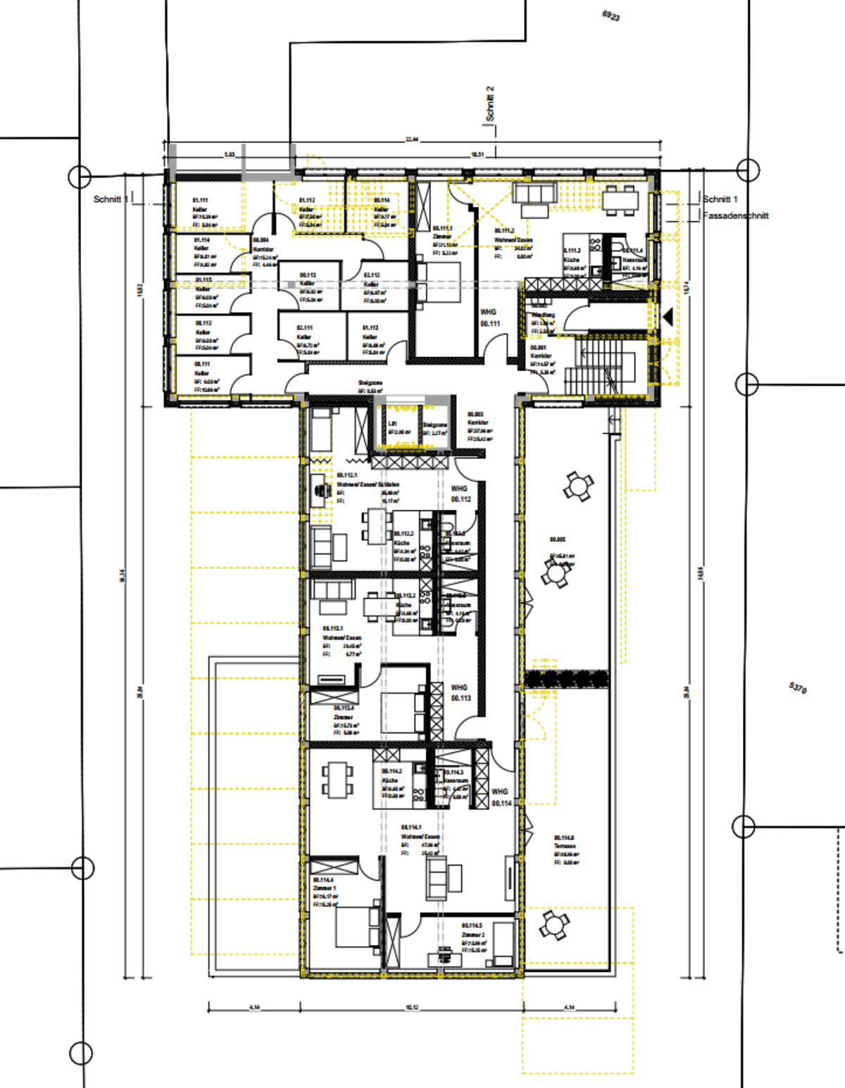 Der Skelettbau trägt durch das Stützenraster die Lasten ab, daher können zukünftige Wände nicht tragend ausgeführt werden.