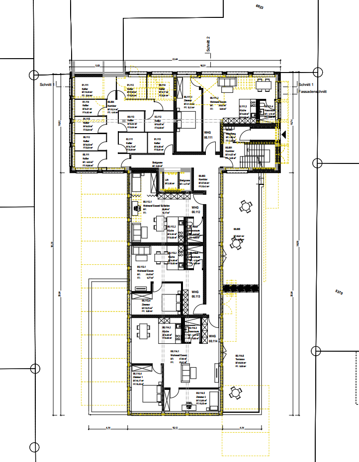 Das bestehende Stützenraster ist nicht optimal für Wohnungen geeignet. Ich konnte jedoch mit dem bestehenden Raster 1.5/ 2.5 Zimmer und 3.5 Zimmer Wohnungen einbauen.