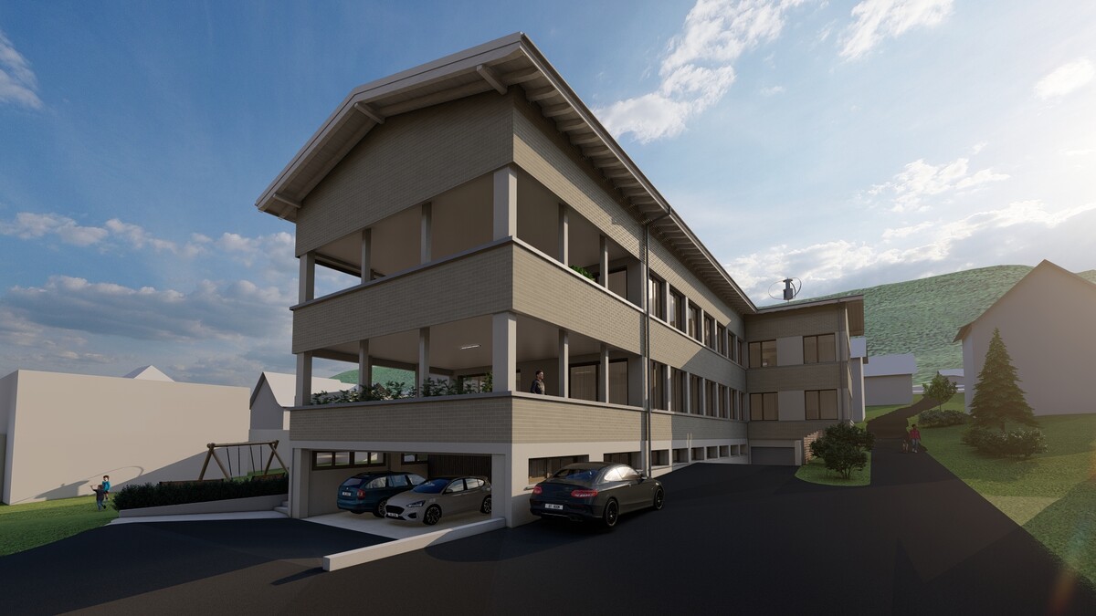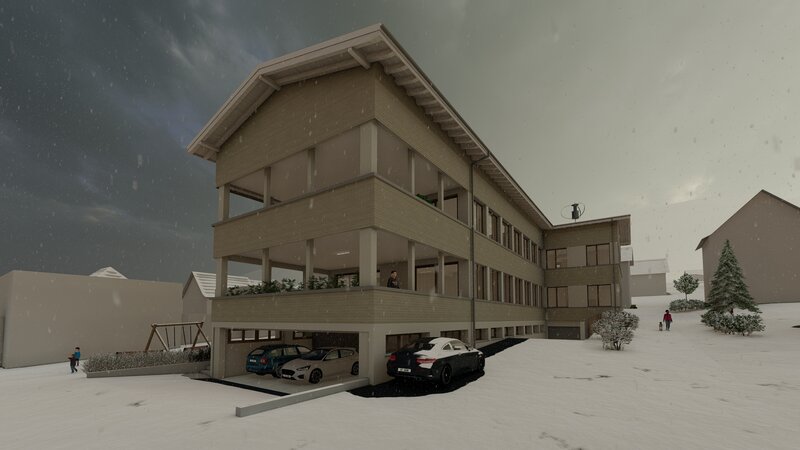 Daher sehe ich mein Projekt in mitten der umliegenden Einfamilienhäuser als den Treffpunkt des Gebiets. Junge Eltern aus dem Haus und der Nachbarschaft schauen ihren Zöglingen beim herumtollen zu und tauschen sich über den neuesten Klatsch und Tratsch aus, währen die Nachkommen Freundschaften schliessen und jeden Tag etwas Neues lernen. Ein Dorfleben mit bester Infrastruktur in mitten der wohl vielseitigsten Stadt des Kantons Solothurn kann sich entwickeln. Ein Projekt so lebensfroh und vielseitig wie die ganze Stadt - echtes WOHNGEFÜHL.