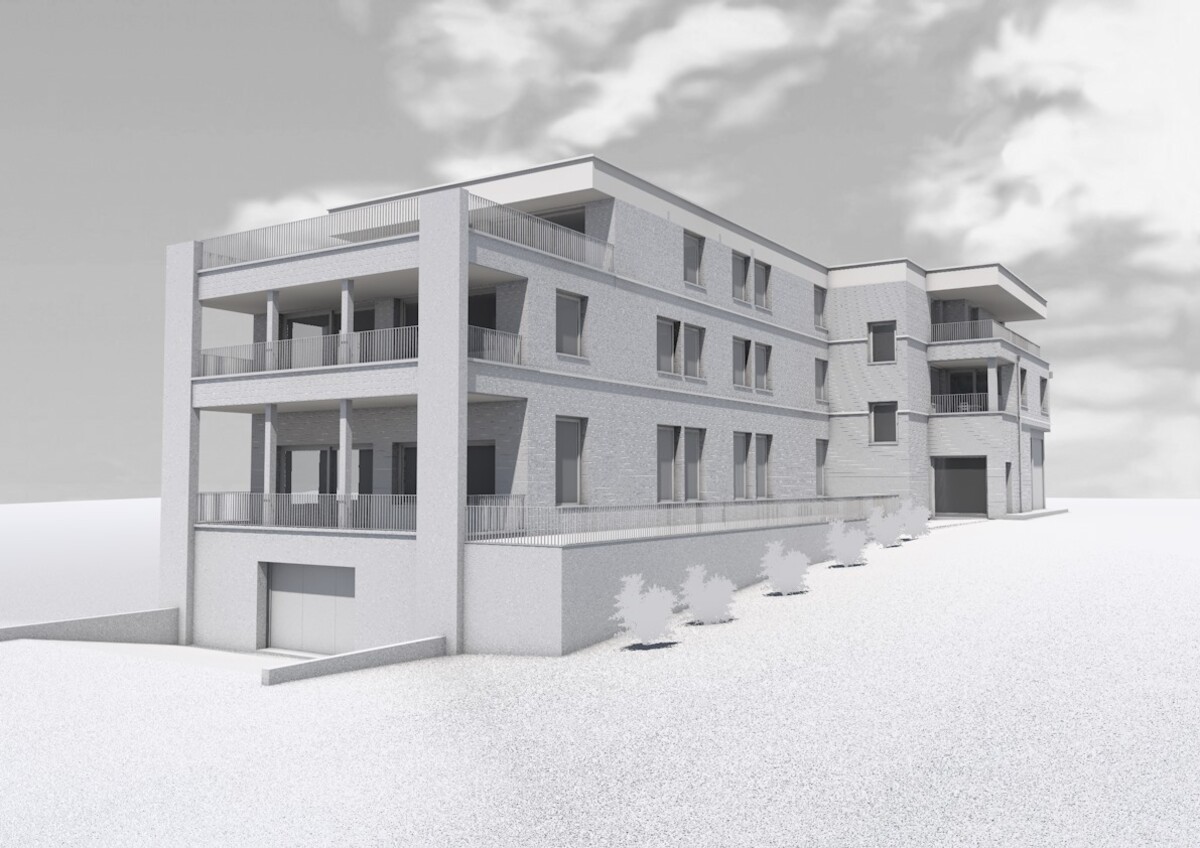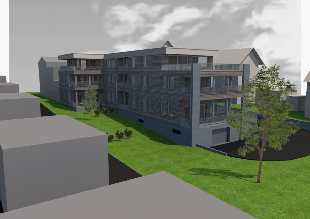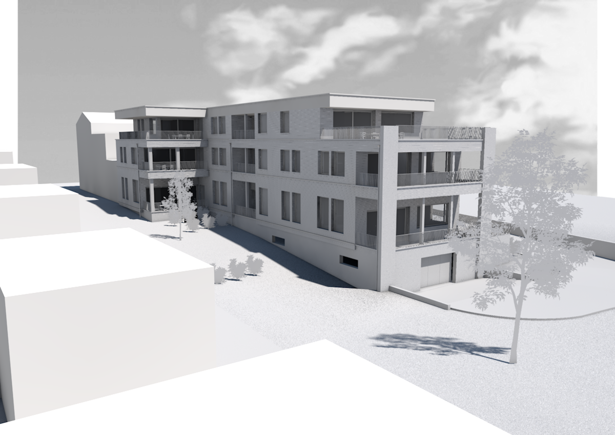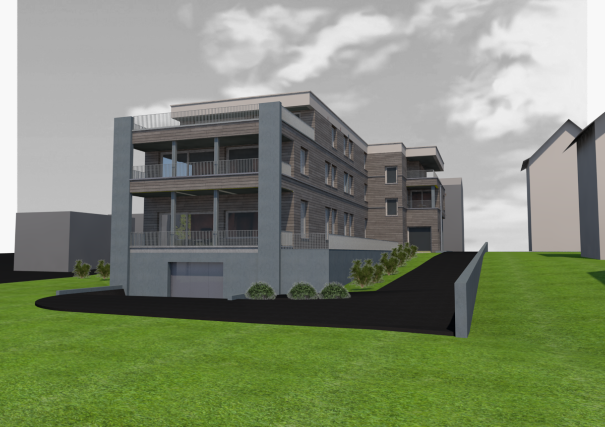 Um einen geeigneten Wohnungsspiegel zu erstellen, wurde eine Marktanalyse erstellt. Hier wurde geschaut, welche Wohnungen gefragt sind und an welchen Wohnungen es in der Gemeinde fehlt. Um das Grundstück mit seiner Ausnützungsziffer möglichst effizient zu bebauen, wird auf dem Längsteil ein zusätzliches Geschoss ergänzt, sowie über den gesamten Fussabdruck eine Attika vorgesehen. Somit kann die bewohnbare Fläche maximiert werden. Um das Gebäude möglichst effizient zu nutzen, wird die Decke über EG belassen und statisch verstärkt. Die bestehende Hourdisdecke wird entfernt und die entstehenden Felder zubetoniert, sowie mit einem Überbeton ergänzt. Das Dach auf dem Querteil wird entfernt und durch eine neue Betondecke ergänzt. Ab dem 1.OG wird mit