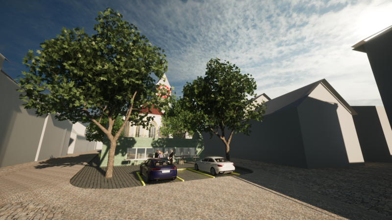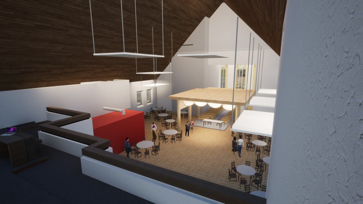 Die Kirche wird als Eventlocation für Hochzeiten und weitere Event umgebaut. Dabei gilt es den denkmalgeschützten Bestand zu wahren. Auf dem Östlichen Parkplatz wird ein Neubau errichtet, welcher in direkter Nutzung zum Bestand steht.
