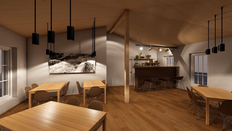 Im denkmalgeschützten Chor soll ein moderner Klettershop integriert werden, der von "La Sportiva" bis "Mammut" alles für Kletterfreunde anbietet. Ausserdem besteht die Möglichkeit, Ausrüstung vor Ort auszuprobieren. Die beweglichen