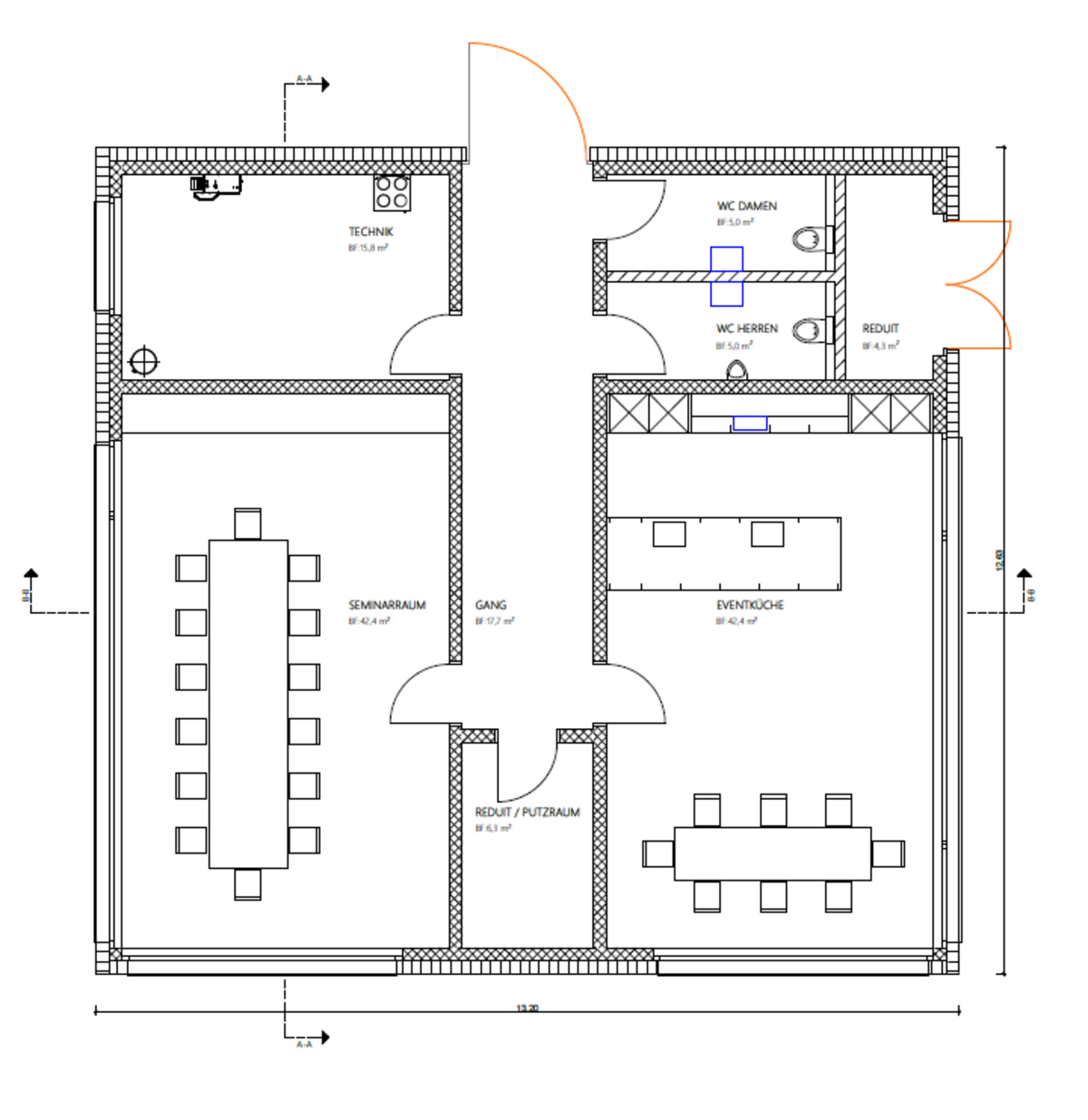 Im Neubau sind ein Seminarraum und eine Eventküche für Privatanlässe oder Firmenevents mit getrennten WC-Anlagen eingeplant.