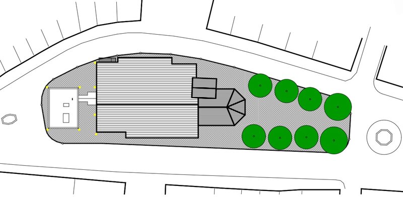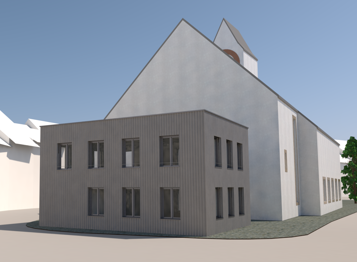 Durch die kombinierte Nutzung eines modern designten Neubaus für eine Nutzung als Co-Working-Space und die Umnutzung der Kirche zu einer Merzweckhalle mit Bar, entstand ein interessantes Projekt.