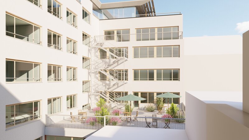 Die Büroräumlichkeiten sind als Coworking Spaces geplant. Dieses Konzept bietet grösstmögliche Individualität der Raumnutzung und kann auf jegliche Bedürfnisse der Mieter angepasst werden. Die Büroräumlichkeiten verfügen zusätzlich über eine grosse Terrasse als Pausenbereich.