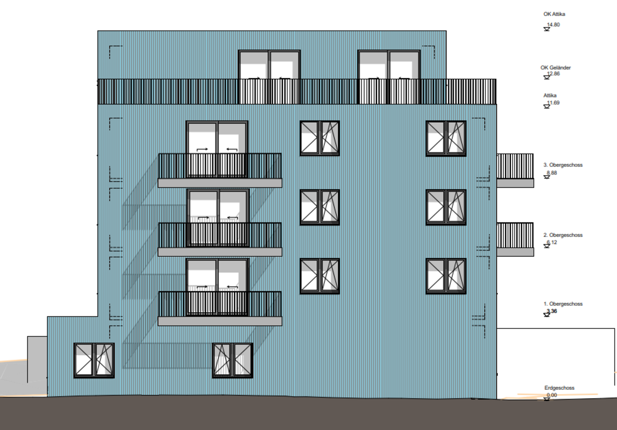 • Im Attikageschoss sind, wenn möglich, zwei Wohnungen zu planen, wovon eine mindestens 180
