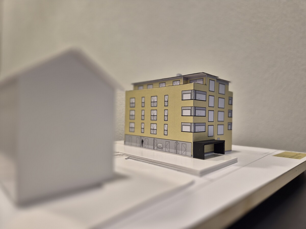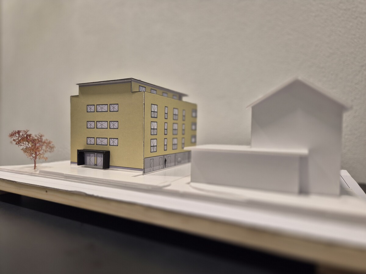 Ausnützung und dauerhaften Bauweise auf das Blatt Papier zu bringen, erwies sich ebenfalls als Herausforderung. Ein Entscheid musste bei den ersten Entwürfen bereits gefällt werden, als die Rendite noch nicht genau berechnet werden konnte. Dies erwies sich jedoch im Laufe der Arbeit als gelungen.