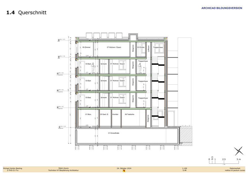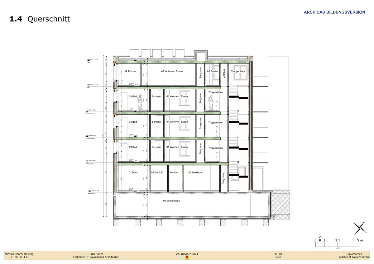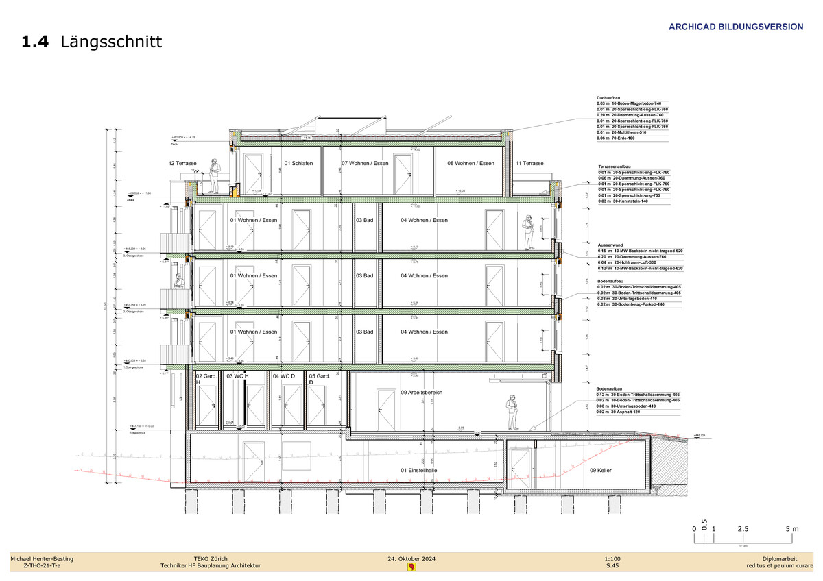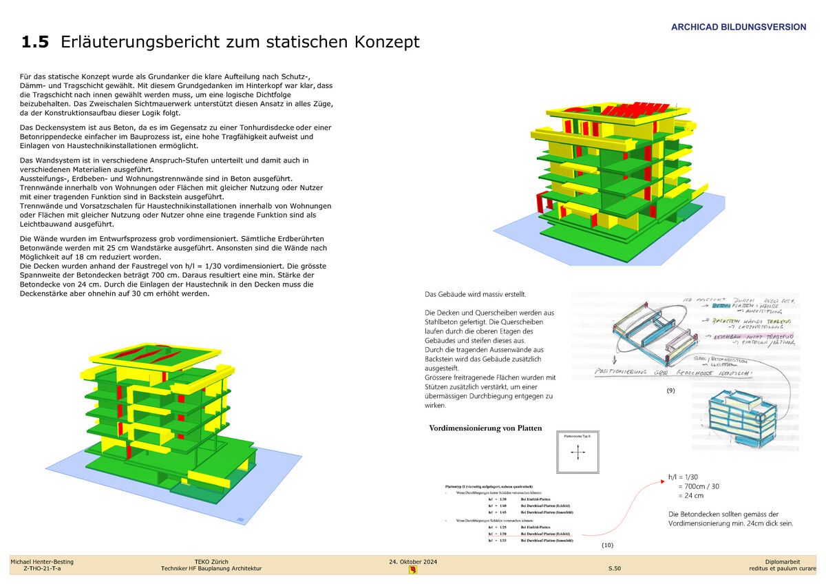 "Die Diplomarbeit hat mir eindrücklich aufgezeigt, wie umfangreich der HF-Lehrgang zum Dipl. Techniker HF in Bauplanung Architektur ist und zu was man instande ist, wenn man das gelernte Wissen bündelt und auf Papier bringt. Diese Arbeit hat mir ebenfalls einmal mehr vor Augen geführt, dass ein strammer Zeitplan und ein leistungsorientiertes Team mit einer guten Dynamik der Schlüssel zum Erfolg sind".