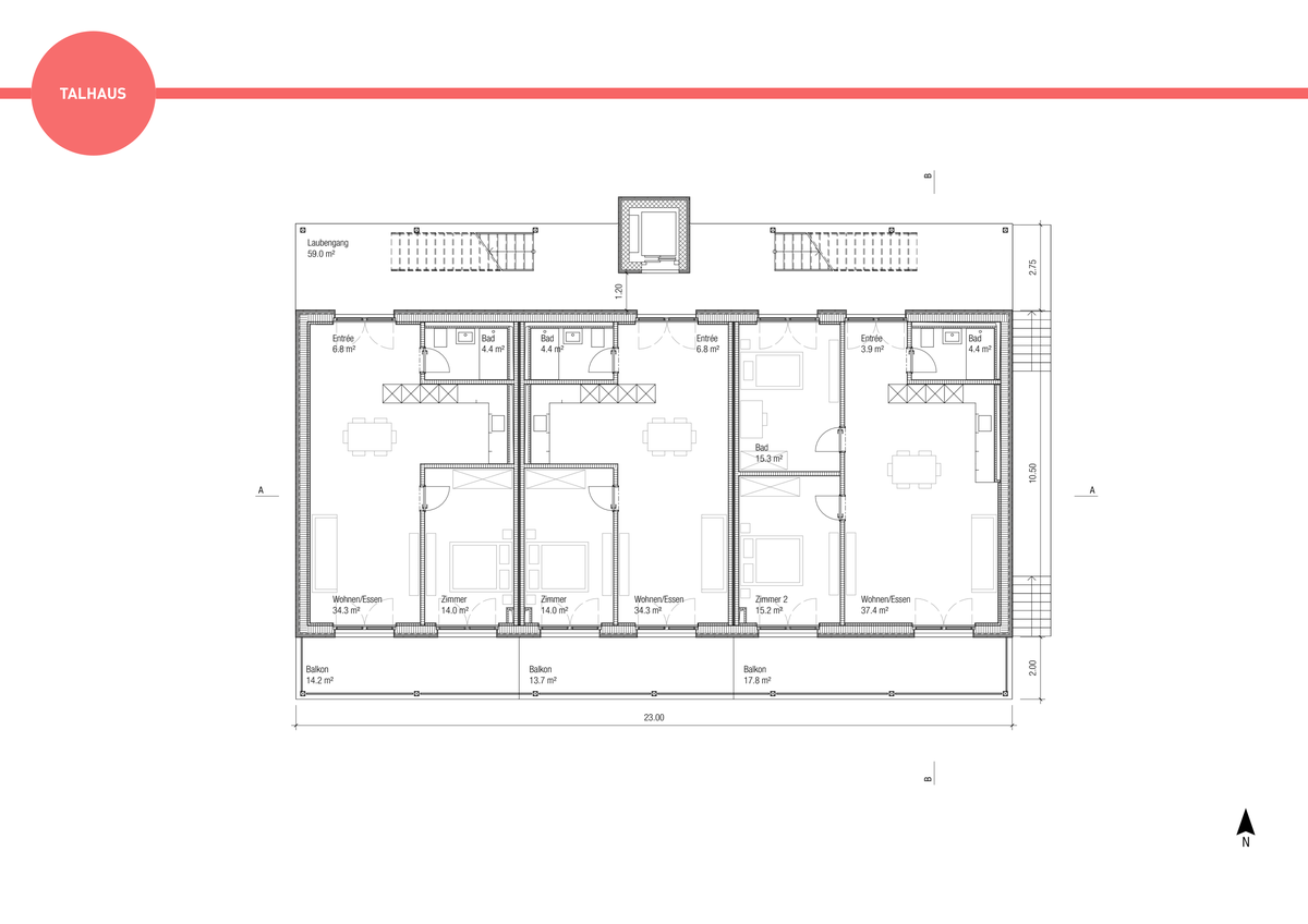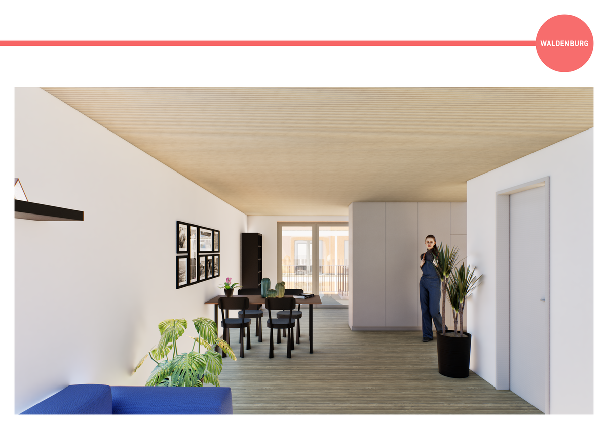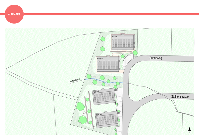 Die Parzelle steht in einer W2-Zone und wird durch eine Gewässerschutzzone in zwei Teile getrennt. In der durchgeführten Marktanalyse stellte sich heraus, dass eine Wohnnutzung unerlässlich ist. Es wurden Wohnungen mit 2.5 und 3.5 Zimmern entworfen, welche eine Zielgruppe bestehend aus Einzelpersonen, paaren und kleinen Familien ansprechen soll.