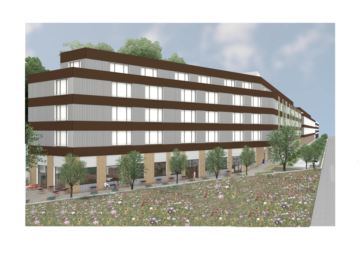 Neben dem bestehenden Gebäude Nord (Gewerbepark Paradies) sind zwei neue Bauten geplant: ein Hotel mit Restaurant im Gebäude Süd und ein Sportzentrum mit Turnhalle und Leichtathletikhalle im Gebäude Mitte. Die Grundstücke sind optimal angebunden; direkt an der Autobahn A1 und nur 1,5 km von der Ausfahrt Kirchberg entfernt. Die existierende Bebauungsstudie legt klare Vorgaben für Volumen und Nutzung fest und schafft damit den Rahmen für eine moderne und vielfältige Gestaltung der beiden Baukörper.