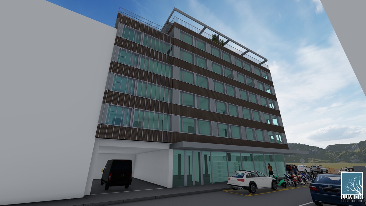 Das erklärte Ziel dieser Aufgabenstellung ist es, das vorliegende Projekt umzunutzen und nach dem aktuellen Stand der Bautechnik umzubauen. So soll das Gebäude wieder eine Rendite erwirtschaften können und dies auch nachhaltig. Das bestehende Gebäude wurde in den 70 Jahren erstellt und ist teilweise (Fassadengestaltung) denkmalgeschützt. Zudem nutzt das Gebäude die Parzelle komplett aus und ist bis an die Baulinien herangebaut. Dies macht ein Aufstocken oder Anbauen unmöglich. Der Bestand ist auf einem Stützenraster aufgebaut und daher relativ flexibel, was die Raumeinteilung angeht. Es können in den Geschossen zeitlose Grundrisse erarbeitet werden, welche langfristig auf die gewünschten Nutzungen zugeschnitten sind. Zudem kann das Gebäude später, wenn dies notwendig sein sollte, relativ einfach wieder auf den aktuellen Markt angepasst werden, da die ganzen Lasten über die bestehenden Stützen abgetragen werden und von den neuen Wänden nur die Erdbebenverstärkung tragen, respektive aussteifend sind.