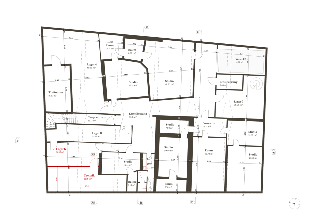 Für die neue Nutzung ist ein Lüftungsmonobloc vorgesehen, welcher mit Schalldämpfern den akustischen Anforderungen gerecht wird.