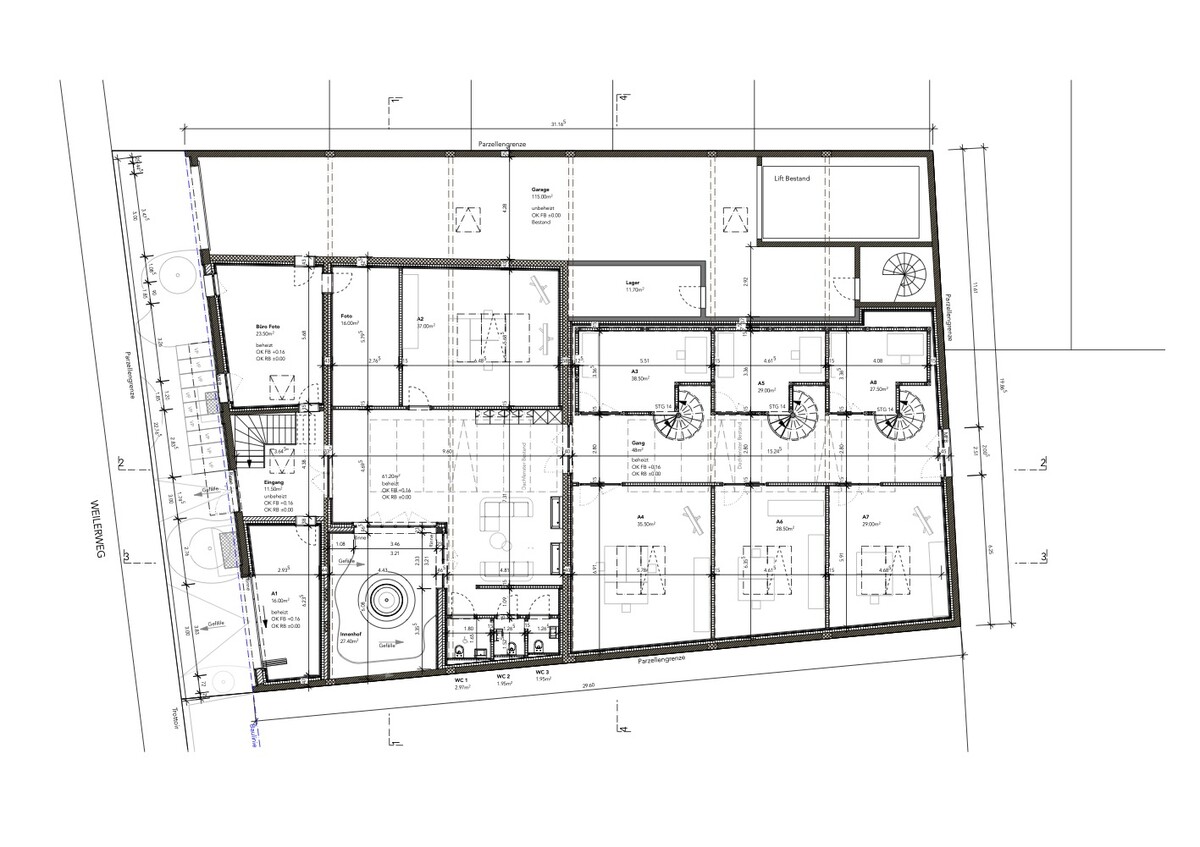 Am Weilerweg 20 in Kleinhüningen steht eine Lagerhalle aus dem Baujahr 1963. Unsere Diplomarbeit stützt sich auf eine Umnutzung des Erdgeschosses damit eine wirtschaftliche und selbstständige Weiterführung möglich wird.
