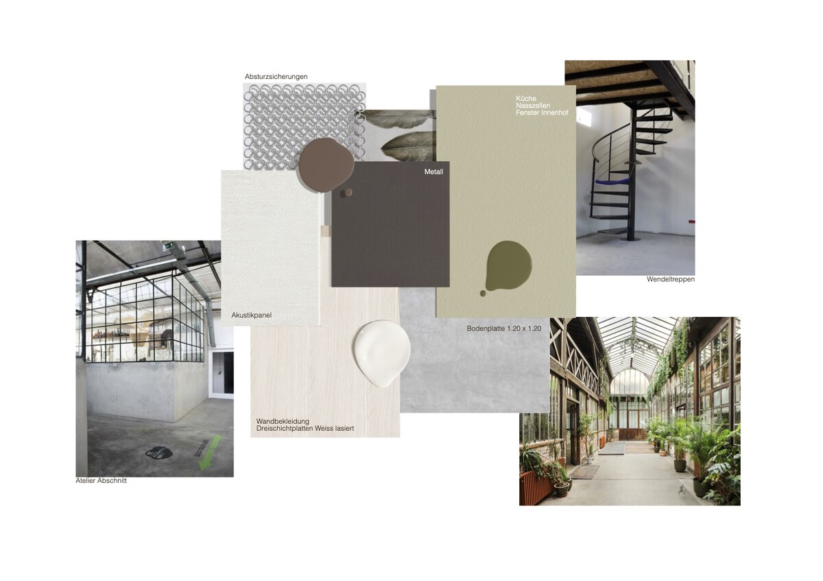 Im Innenbereich wird mit einem schlichten Materialkonzept gearbeitet, da die Nutzung Farbe und Kreativität mit sich bringt.