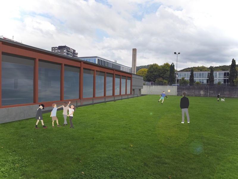 Auf der Parzelle des Schulareals soll ein Neubau für ein Hallenbad entstehen. Zur Verfügung steht dafür der schuleigene Rasenplatz. Ziel ist es, die Rentabilität der Schwimmhalle zu stärken, indem das Bad künftig eine attraktive Anlaufstelle für Vereine und für private Besucher wird.