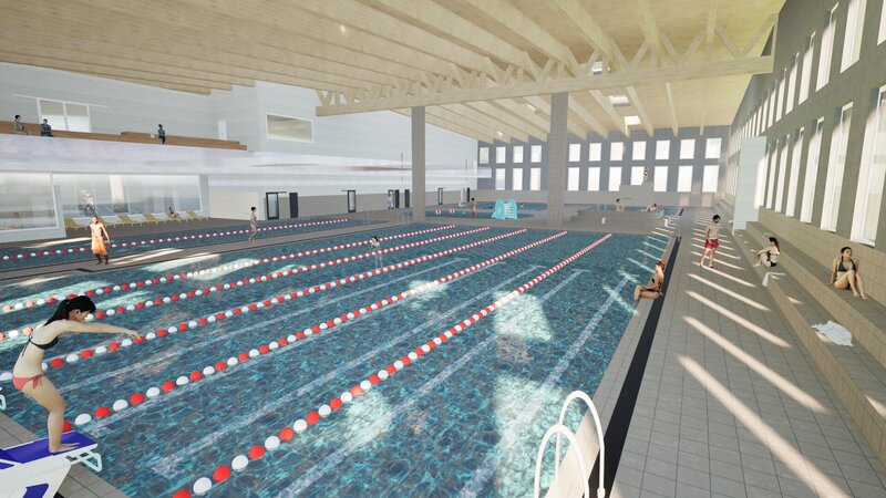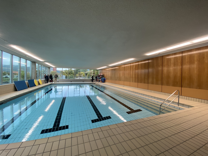 Das bestehende Denkmalgeschützte Hallenbad wird komplett Kernsaniert. Alle Beläge inkl. Bodenaufbau werden erneuert, die beschädigten Betonstellen werden sondiert und ausgebessert. Die gesamte Pooltechnik wird ersetzt und somit auf den aktuellen stand der Technik gebracht.