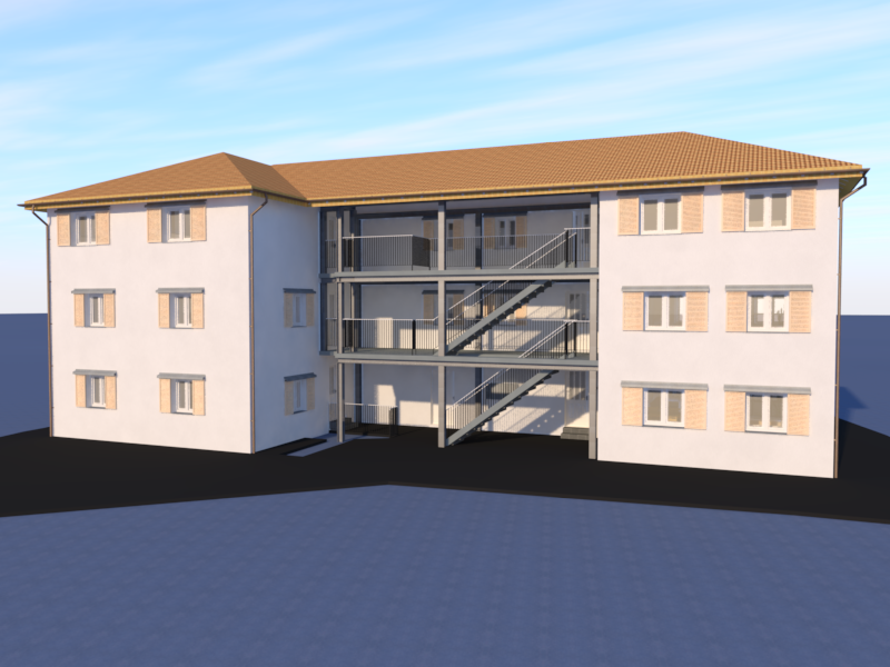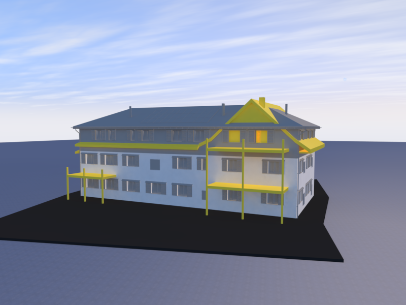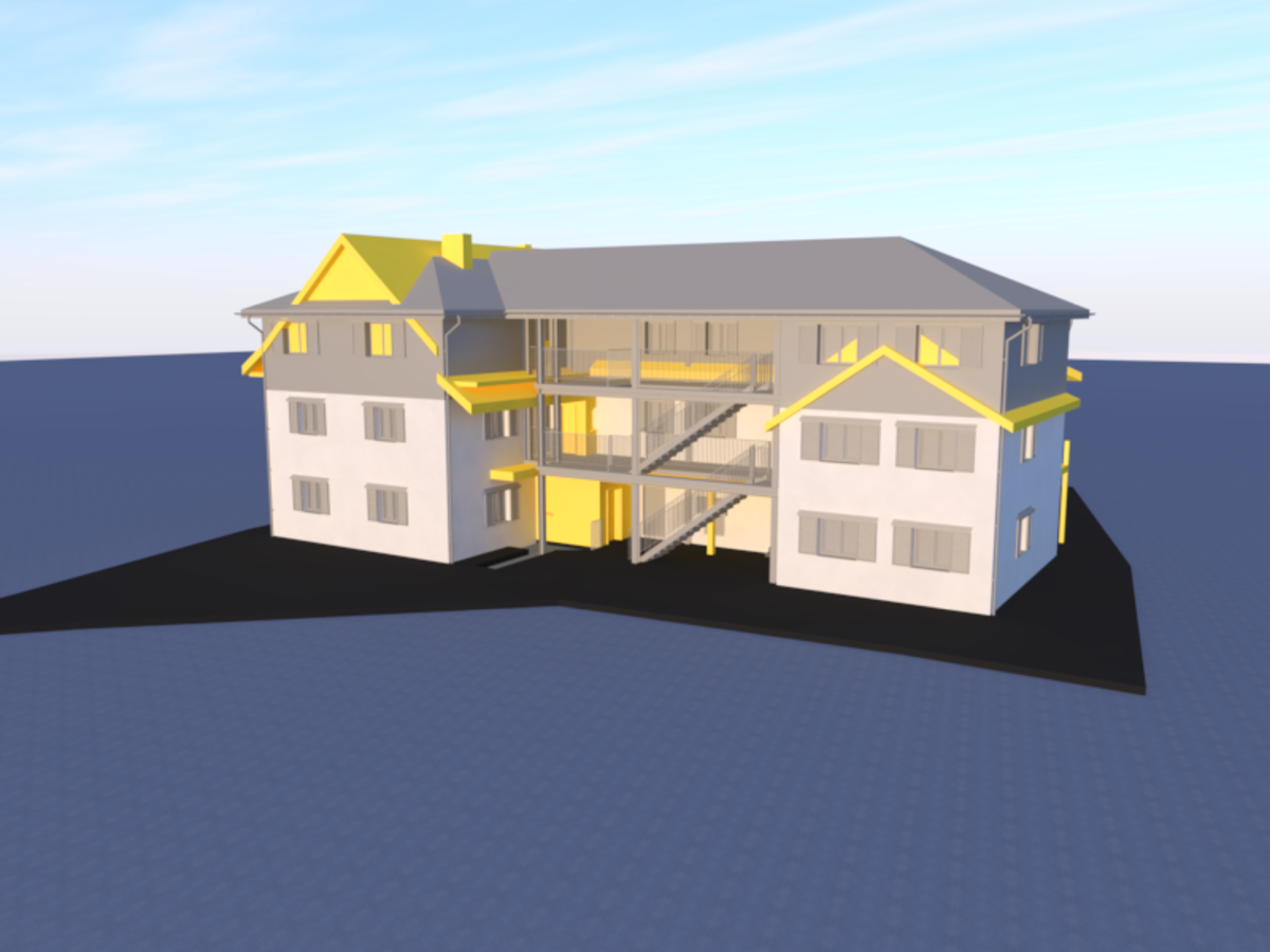 Mein Konzept konzentrierte sich auf den umfangreichen Umbau eines bestehenden MFH. Hierbei kam eine Erweiterung durch eine Aufstockung in Betracht, um weitere Wohneinheiten zu generieren und damit die Rendite zu steigern.