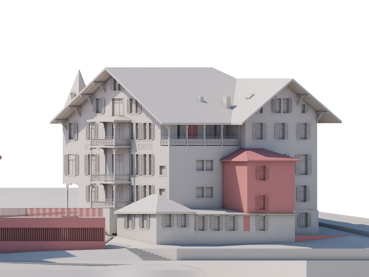 Im Rahmen der Diplomarbeit soll das altehrwürdige , denkmalgeschützte Hotel Kreuz in Romoos LU saniert, umgebaut und einer markgerechten Nutzung zugeführt werden. Zudem soll für den östlich angrenzenden Bereich ein Neubauprojekt entworfen werden, welches der Lage inmitten des Gemeindezentrums auch würdig ist.