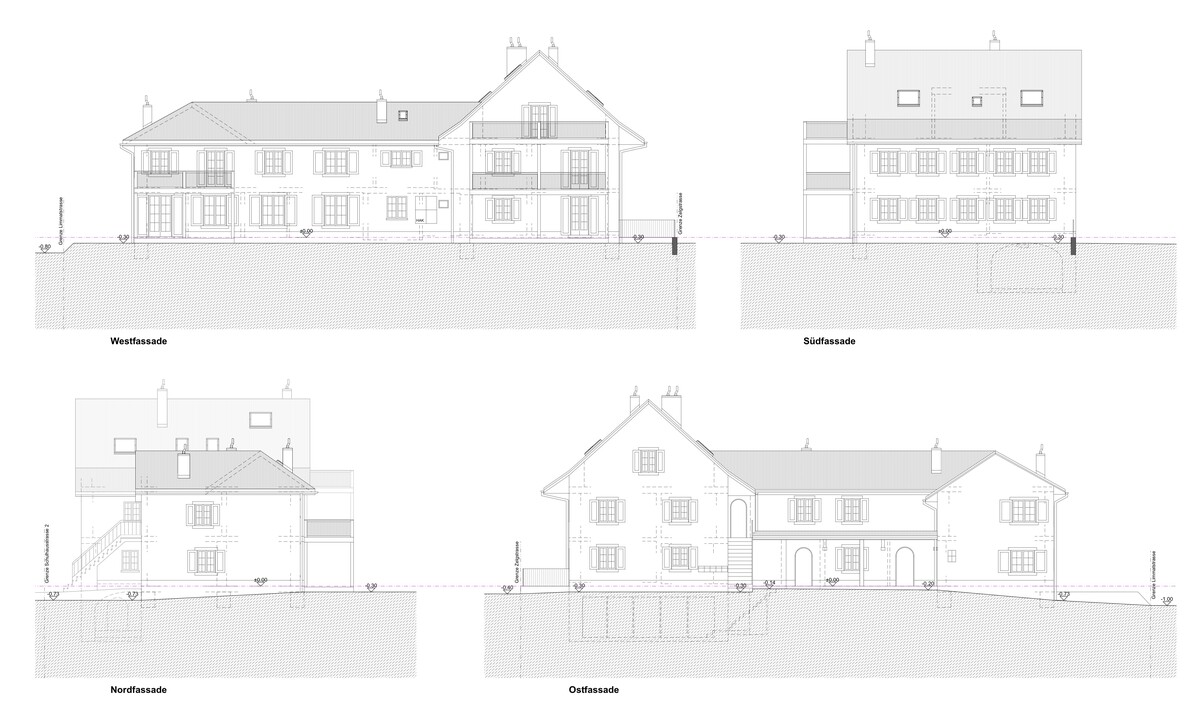 Platz auf der Westseite optimal ausgenutzt werden ohne dass ein Gefühl der Überfüllung entstand. Durch die 2 Anbauten konnte das bestehende Gebäude in seiner Grundstruktur erhalten bleiben und so sinnvolle Grundrisse gestaltet werden. Die Charaktererhaltung wird zusätzlich mit der langlebigen verputzten hinterlüfteten Fassade in der gleichen Farbe wie bisher unterstrichen. Die vorgegrauten Lärchenfassaden an den zwei Erweiterungsbauten bringt einen modernen Touch.