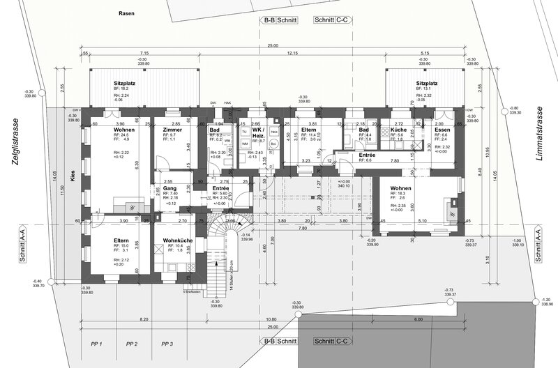 Bewohner hat, sowie einen Besucher- / IV-Parkplatz. Auf der Ostseite hat es unter dem bestehenden Unterdach Veloabstellplätze.