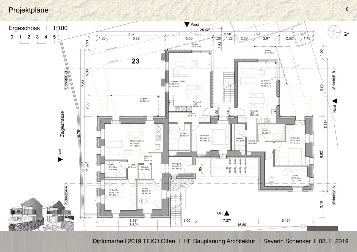 Die anderen vier Wohnungen haben ihren Eingang auf der gegenüberliegenden West-Seite des Gebäudes.