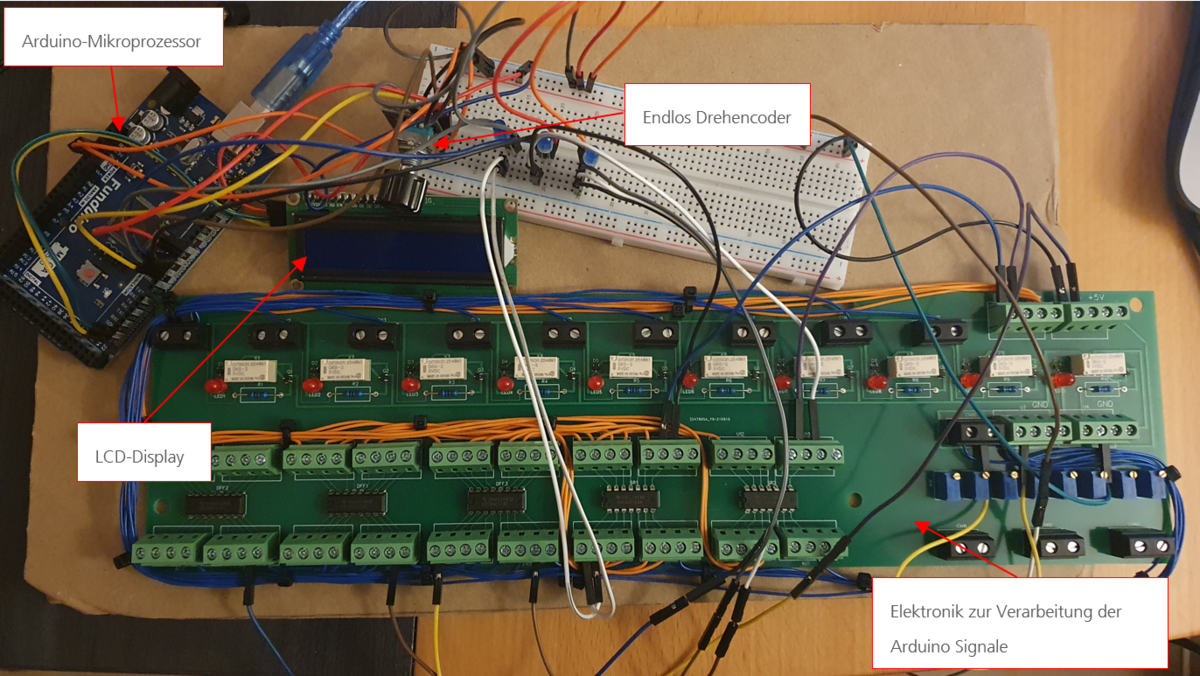 Die Eingabe der Parameter-Veränderung wird über ein endlos Drehencoder an den Mikroprozessor übermittelt, zur Anzeige der aktuellen Einstellung wurde 16x2 LCD-Display verwendet (siehe Abbildung 3).