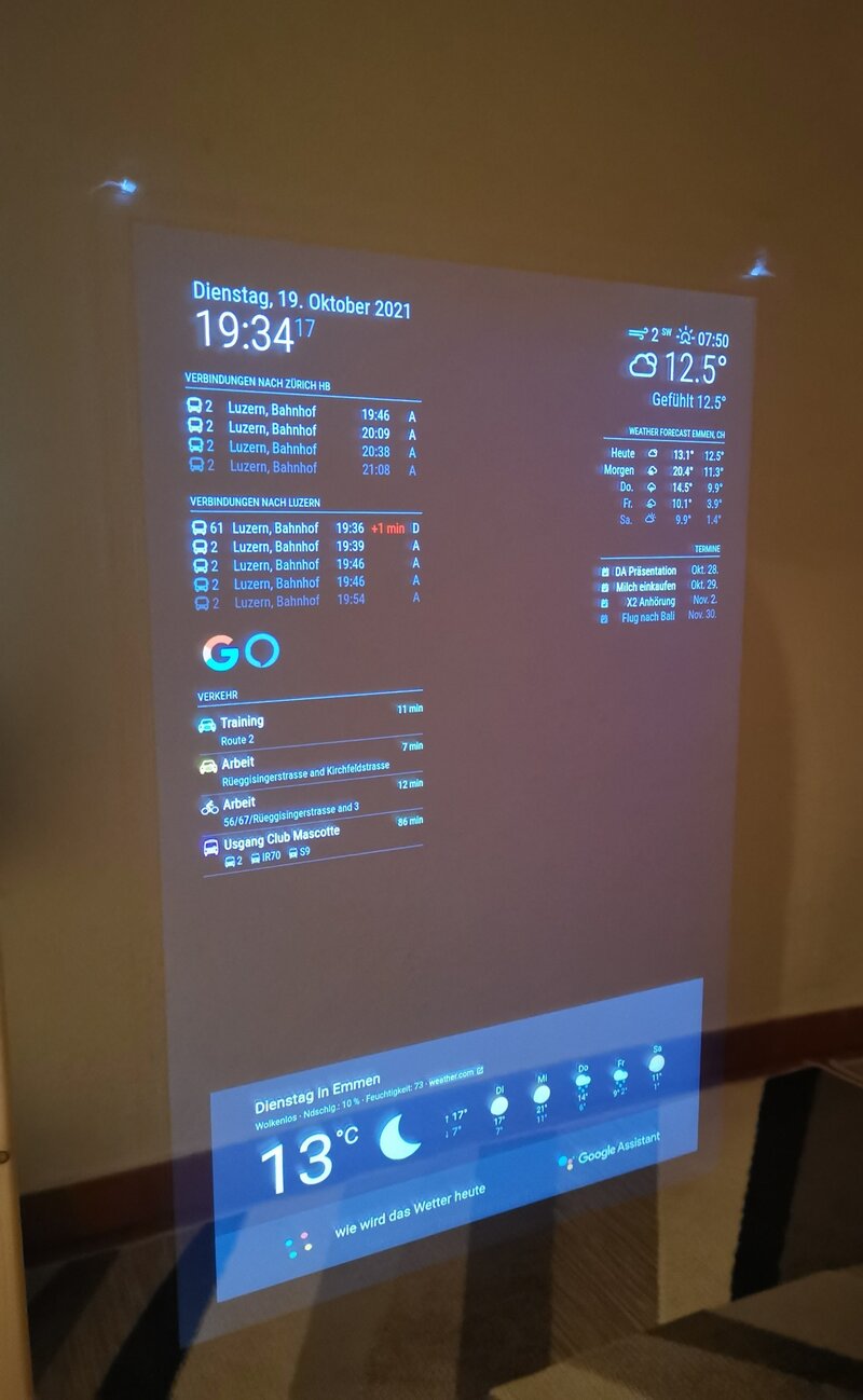 Der Smart Mirror vereinfacht mir mein Alltag erheblich und kann bei Bedarf als nur herkömmlicher Spiegel verwendet oder mit einfachen Konfigurationen ebenfalls erweitert werden.