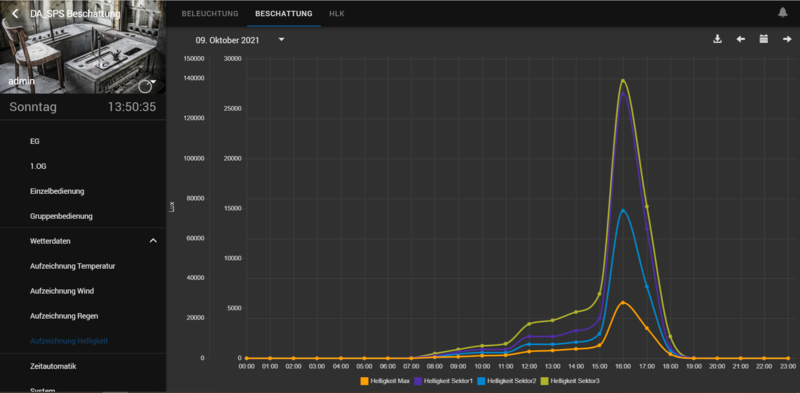 Das Ergebnis meiner Arbeit ist eine vollfunktionsfähige Beschattungssteuerung, die für bis zu 64 Storen genutzt werden kann. Sie kann optional mit einem sehr kleinen Programmieraufwand erweitert werden. Das ganze System kann über KNX gesteuert werden. Es gibt zwei verschiedene Visualisierungen. Die Wago Web-Visu dient dem Techniker, zur Parametrierung und Einstellung der Kanäle. Die Antcas Visualisierung ist für den Endkunden bestimmt. Jede Store kann nach Wunsch Einzel- und in Gruppen bedient werden. Die Befehle werden auf der Beschattungssteuerung wie folgt priorisiert: