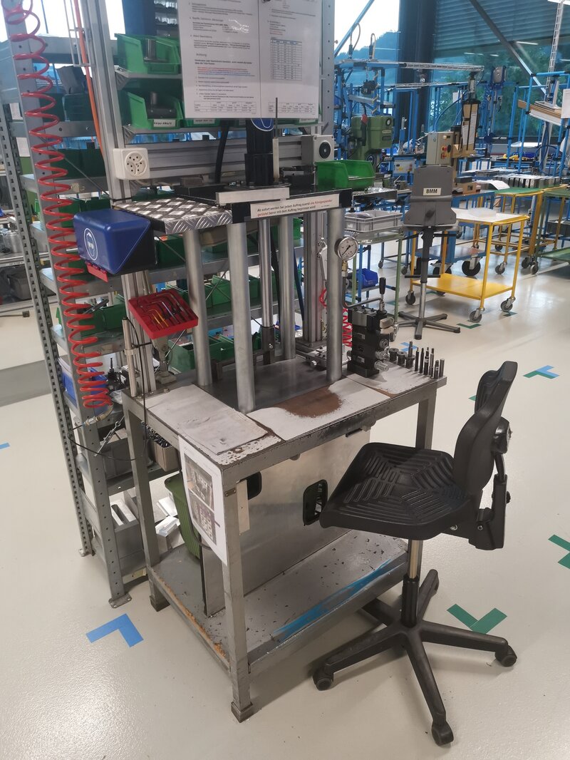 Das Modul wurde auf einer bestehenden Anlage integriert, um die Kosten für die Diplomarbeit tief zu halten. Deshalb war hier wichtig, dass das Modul der Presse eine klare Abgrenzung hat. Somit kann das Modul zu einem späteren Zeitpunkt ohne grossen Aufwand weiterverwendet werden.