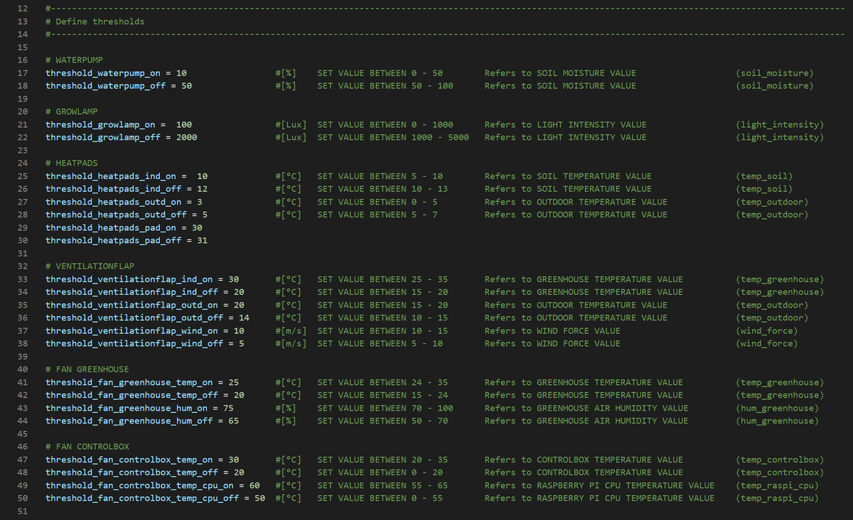 Mehrere Temperatur- und Luftfeuchtigkeitssensoren überwachen das Klima im Innen- und Aussenbereich des Gewächshauses. Reguliert wird das innere Klima durch eine von zwei Linearmotoren angetriebene Lüftungsklappe, einem Lüfter und zwei Heizmatten. Falls die Lichtstärke über den Tag zu gering sein sollte, unterstützt eine 110W Pflanzenlampe das Wachstum.