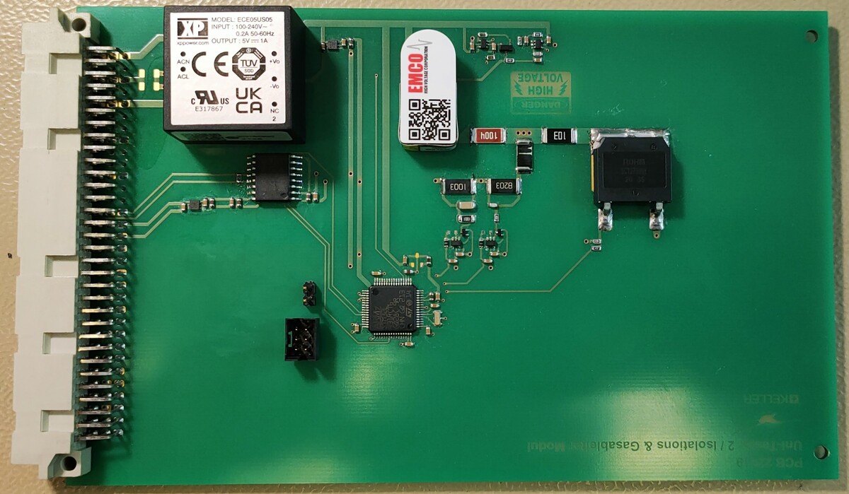 Das Endergebnis ist ein funktionsfähiges Isolations & Gasableiter Modul, welches eine Spannung zwischen 50V und 1500V ausgeben kann. Der Messbereich liegt zwischen 2MΩ und 4GΩ, abhängig von der eingestellten Ausgangsspannung. Das Modul ist durch den AC/DC Wandler sowie dem RS-485 Treiber galvanisch getrennt. Über Modbus kann das Modul angesteuert und kalibriert werden. Es können zwei verschiedene Modis ausgewählt werden, um den Prüfling auf die Isolation zu testen.