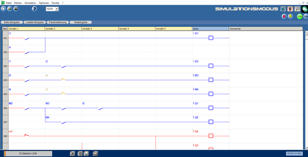 Es benötigt einen Transformator, um die Steuerspannung einzustellen. Neben der Gleichspannung von 24 V benötigen verschiedene Komponenten eine Spannung von 230 V. Für die Verriegelung ist eine Wechselspannung von 230 V erforderlich. Am Ausgang der Motorschütze sind drei Phasen mit einer 400 V Wechselspannung erforderlich, aber ich werde eine Phase für die Simulation verwenden.