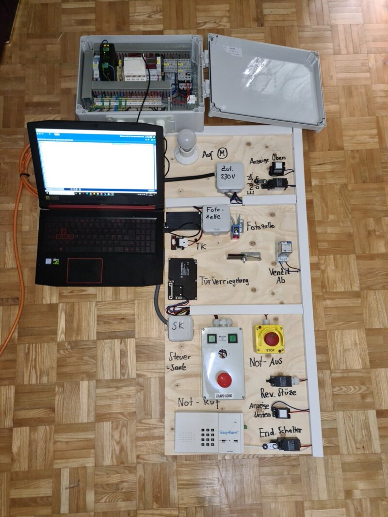 Ziel war es, eine Hebebühne für Menschen mit eingeschränkter Mobilität zu bauen. Das heißt, ich habe die SPS selbst programmiert. Natürlich gibt es auch seine eigene Schaltplan- und CAD-Zeichnung. Plus eine Plattform, die simuliert werden kann.