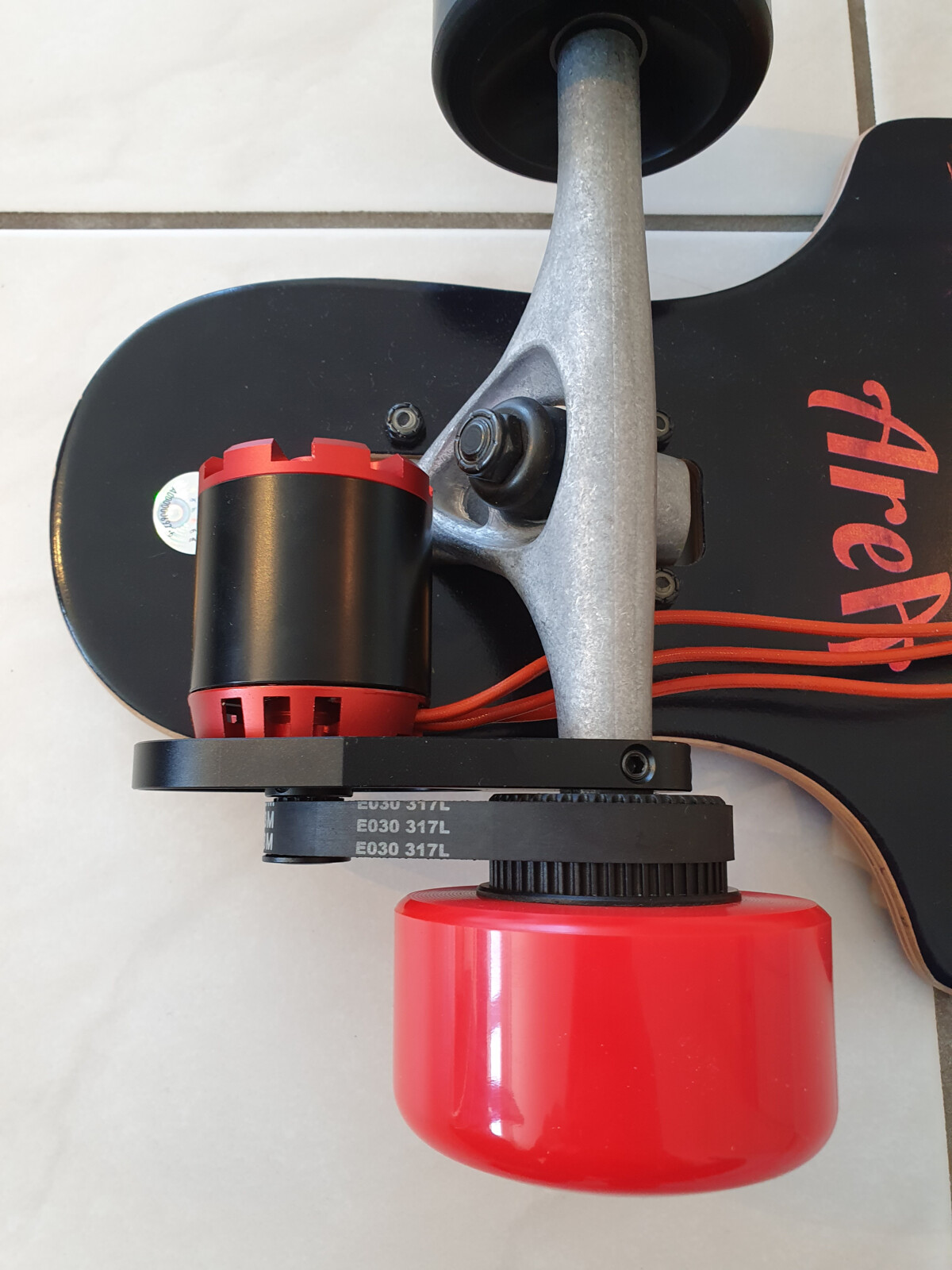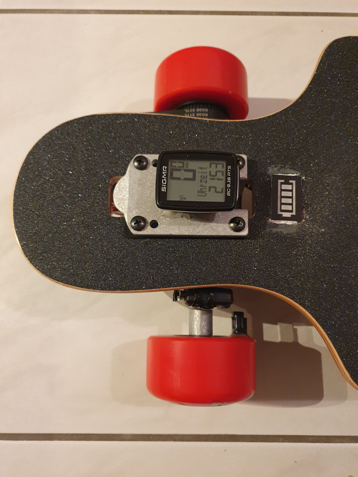 Ein eingebauter Magnet im Antriebsrad gibt dem Sensor auf der Achse die nötigen Drehimpulse. Somit wird die Geschwindigkeit und die gefahrene Strecke im Display auf dem Brett angezeigt.